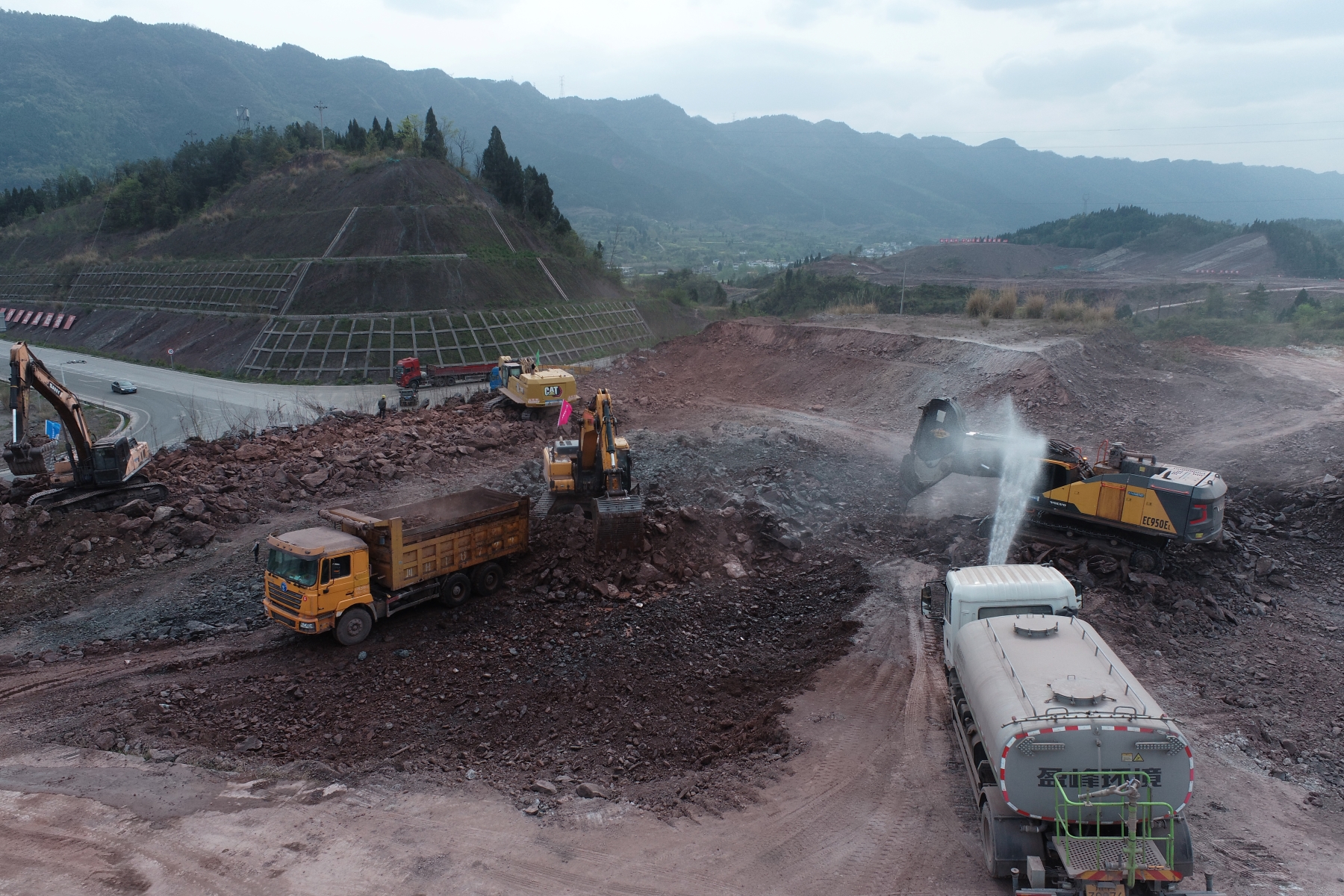 4月4日,正值清明假期,G542線旺蒼嘉川化工園區(qū)段臨時道路工程施工現(xiàn)場仍一片繁忙。